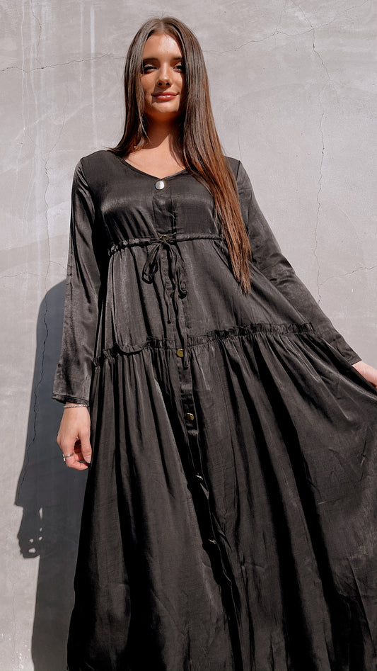 Black Long Sleeve Drawstring Dress
