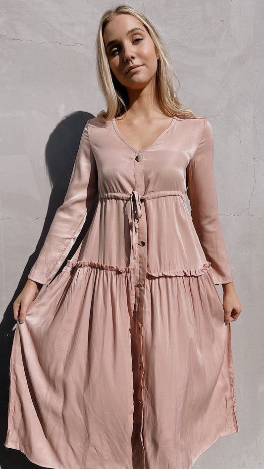 Pink Long Sleeve Drawstring Dress