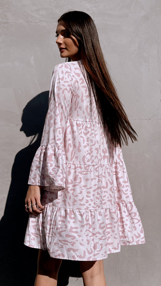 Pink Leopard Ruffle Swing Mini Dress